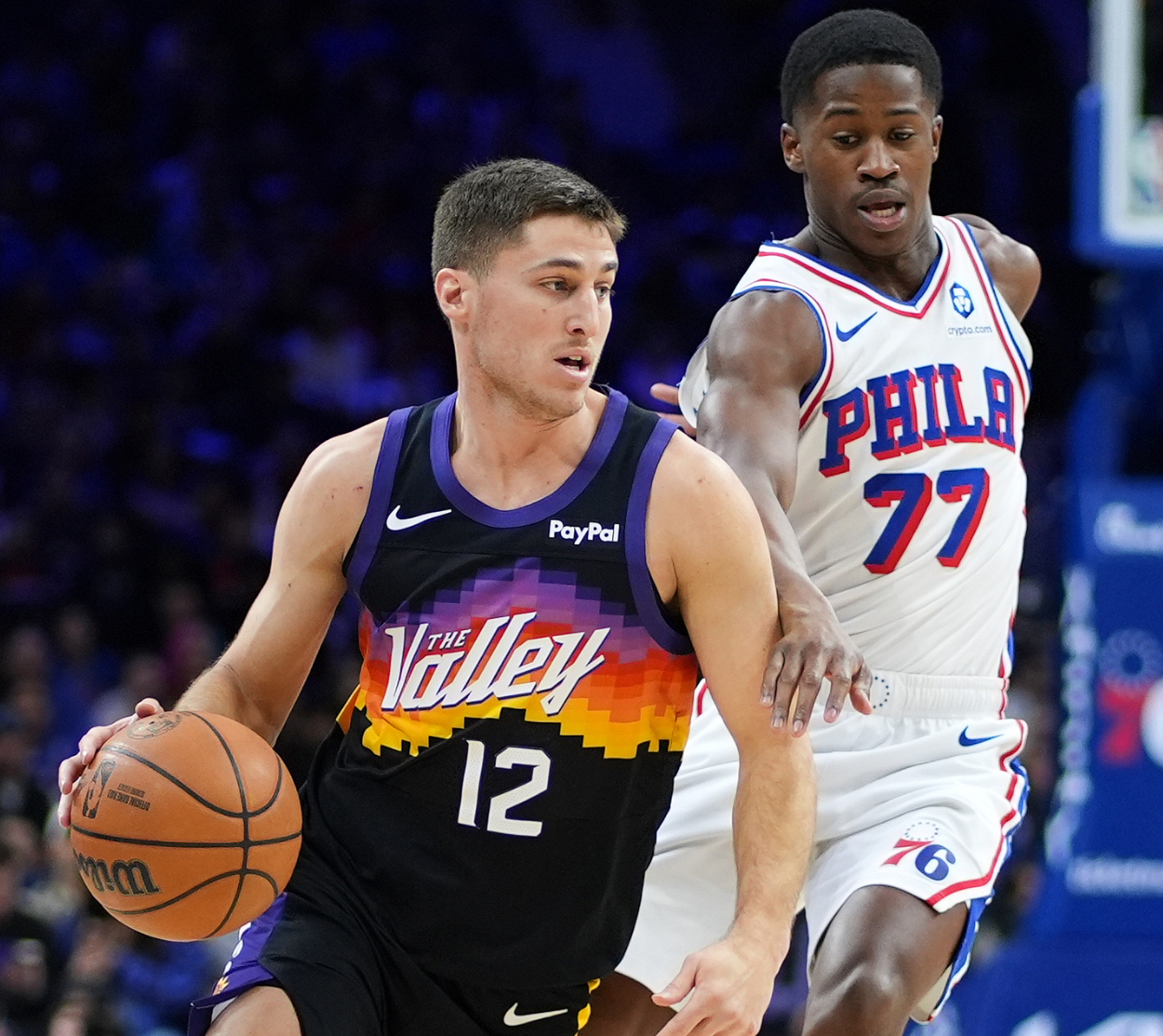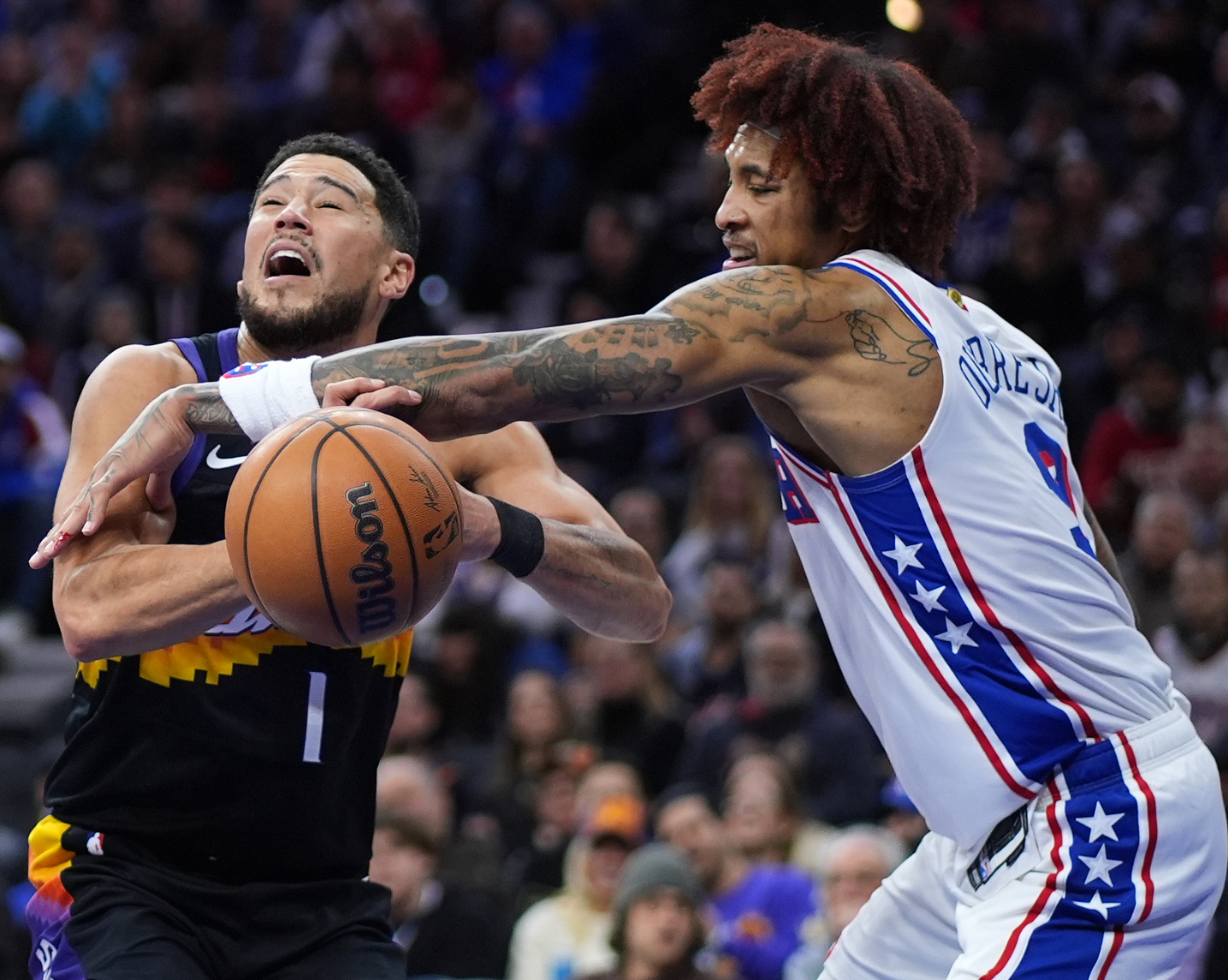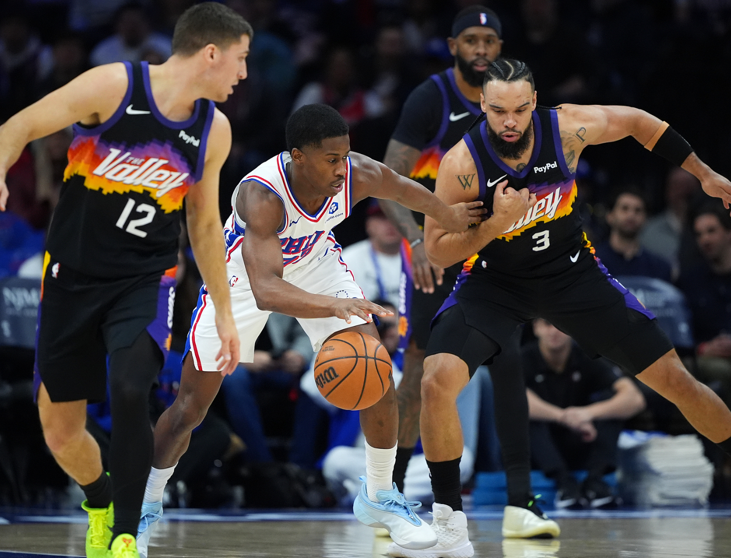 末节,古德温开场再中三分球,布克登场前两队的分差已经拉开到17分,马克西疯狂打铁,埃奇库姆继续苦撑球队,进入最后5分钟费城落后17分之多,太阳松的太快2分钟被打9-0,关键球还是布克命中,随后比赛走向完结。