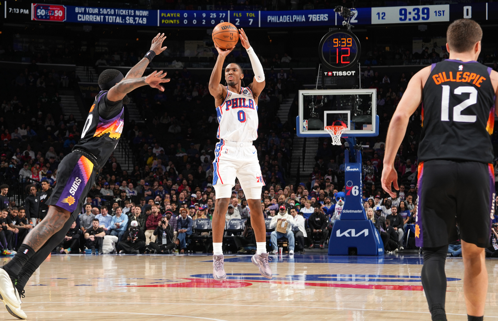 马克西成为了全明星先发,他在昨夜也拿到29分8助攻8抢断的豪华数据,但这场比赛马克西开场手感全部单节5中0+三分2中0怒砍0分0篮板1助攻,埃奇库姆成为费城的进攻箭头单节7中4拿到10分。布克在首节9分钟里拿到9分,首节打完费城领先3分。