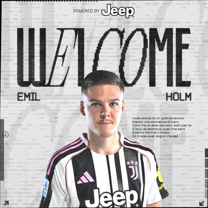 官方:霍尔姆加盟尤文图斯,租借至赛季末+选择买断条款